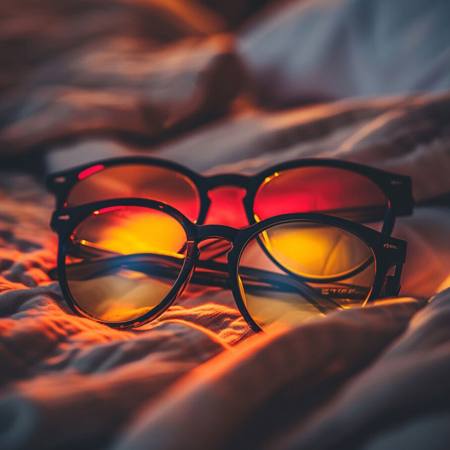 Our glasses filter out the blue wavelengths that keep your brain on alert. The result? Calmer evenings, rested eyes, and a body that finally gets the signal — it’s night.
