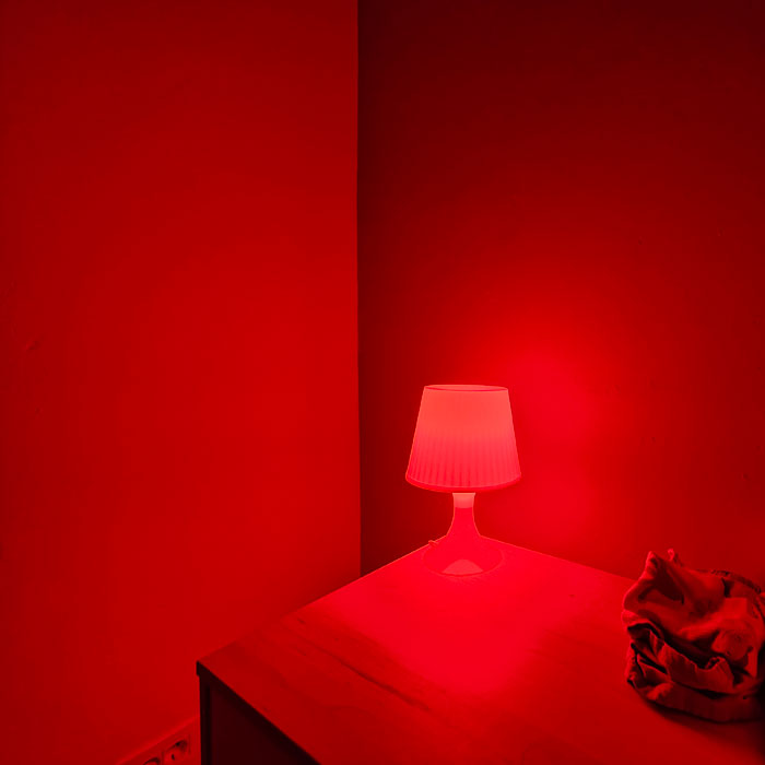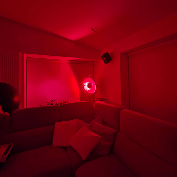 A warm blend of amber and red. Not too bright, not too dim, just a comfortable middle ground. Great for hanging out, chatting, relaxing, or letting the evening unfold naturally.